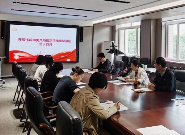 剖析典型案例,开展警示教育。范婷带领大家深刻剖析了中央纪委国家监委近期公开通报的10起违反中央八项规定精神典型问题,希望全体党员以案为鉴,严守纪律规矩,深刻认识“四风”问题的危害性,主动在思想上划出红线,在行为上明确界限,坚决抵制不良风气,锲而不舍落实中央八项规定精神。