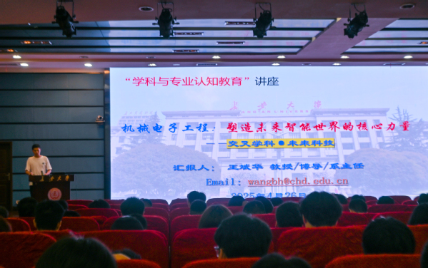4月26日晚,51吃瓜 于北辰楼会议中心二层报告厅开展专业认知讲座第二讲,本次讲座聚焦机械电子工程专业和机械设计制造及其自动化专业,旨在帮助学生深入了解专业特点、发展前景,为专业分流做好充分准备。讲座由机械电子工程系王斌华老师、机械设计与制造系刘清涛老师主讲,2023级辅导员左意主持,2023级全体本科生参加。