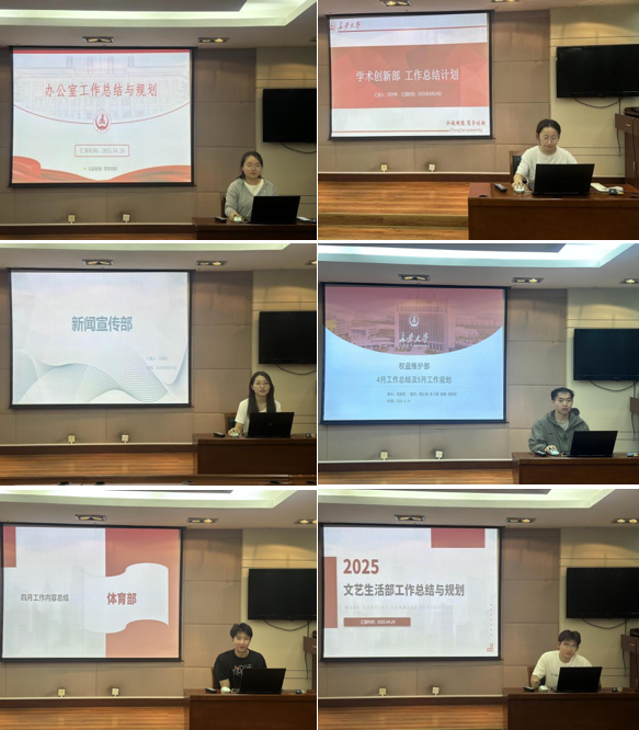 研究生会各部门负责人依次进行三、四月份工作汇报并提出五月份工作计划,各负责人表示一定会明确自身职责,努力平衡好学生工作与科研学习的关系,将以强烈的责任心和积极的工作态度带领部员们投入到未来的工作中,助力学院研究生会蓬勃发展。