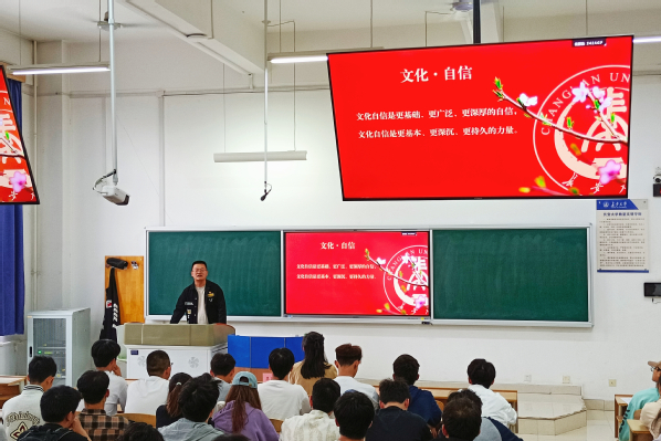 吴德林以“沿着总书记的足迹,汲取文化自信的力量”为题讲授专题团课,结合习近平总书记在全国各地考察过程中的重要讲话,全面阐释了文化自信在强国建设、民族复兴中的重要支撑作用。通过展示全国各地丰富的文化遗产、独特的地域文化,带领青年学子领略中华文化的博大精深与历久弥新。他指出,中华优秀传统文化是中华民族的根和魂,正是这些散落在中华大地上的一处处文化遗迹,蕴藏着“何以中国”的文明力量,我们也在传承与发展中不断汲取文化自信的力量。同学们对“文化自信是更基本、更深沉、更持久的力量”有了更加深刻的感悟,纷纷表示要主动传承和弘扬中华优秀传统文化,让文化自信成为推动中国式现代化的强大精神动力。