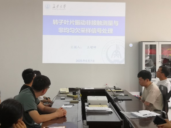王增坤老师做了《转子叶片振动非接触测量与非均匀欠采样信号处理》主题报告,他针对航空发动机转子叶片监测,就叶端定时技术、叶端传感Min-Max布局、叶端非均匀欠采样信号分析等研究内容做了详细报告。研讨会开展期间,主讲人就所研究解决的行业内关键问题和关键技术、以及未来研究规划等做了分享,并就当前工作进展与前沿发展与全系教师开展了讨论交流,营造了良好的学术氛围。