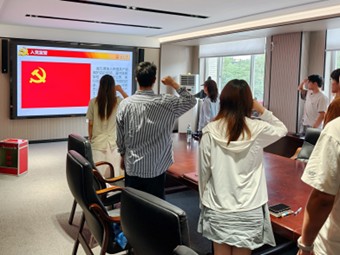 活动最后,在寇文娟的领誓下,全体与会党员高举右拳,字字铿锵重温入党誓词,重忆入党初心。