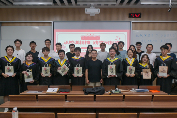 6月20日,51吃瓜 本科生第一党支部于WX2103教室开展毕业生党员教育活动。支部书记吴德林以“承校训精神,践党员担当”为题,为毕业生党员上离校前的“最后一课”,对毕业生党员提出殷切期望。他强调,党员们要在“弘毅”精神的指引下,坚守初心,将个人理想融入国家发展;要秉持“明德”理念,在未来工作生活中修身立德,弘扬正气;要践行“笃学”品格,保持终身学习,追求专业卓越;要发扬“创新”精神,在行业领域大胆突破,开拓进取。最后,由吴德林向毕业生党员赠送毕业纪念品。