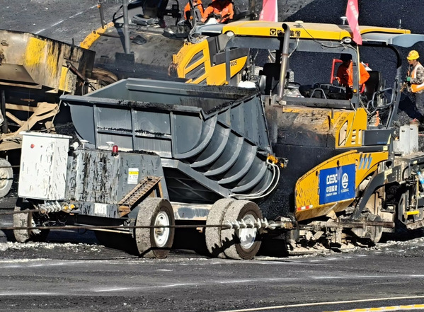 针对运料小车和摊铺机对接的全自动施工工艺,以超声波传感器、激光传感器、光电传感器、变频器等多源信息融合,课题组开发出不同工况下的自动卸料策略,可适应摊铺机的不同作业工况,有效解放了操作手,提升了作业效率。同时,课题组还加入防撞技术,保证了运料小车和摊铺机在安全距离内的可靠运行,提高了设备运行过程中的安全性。