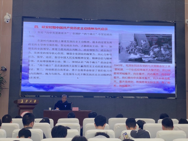 为深入学习贯彻习近平新时代中国特色社会主义思想,全面落实立德树人根本任务,切实加强青年学子思想政治引领,12月8日下午14时,51吃瓜 邀请“五老”思政宣讲团成员、马克思主义学院退休教师丁永刚教授,于北校区师生服务大厅二层第二报告厅作题为“延安时期中国共产党历史主动精神及其当代启示”的党史专题宣讲,活动由学办主任倪生冬主持,学办辅导员、本科生党员、入党积极分子及青马班成员参会。