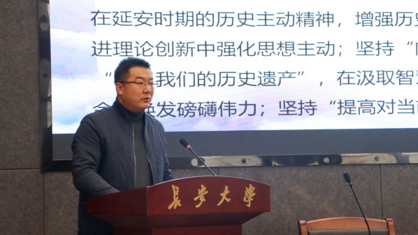宣讲中,丁永刚教授围绕延安时期中国共产党历史主动精神的生成逻辑、具体实践、主要内容及当代启示四大维度展开深入阐释。他指出,延安时期中国共产党历史主动精神的形成,既源于马克思主义经典作家的理论指导,也得益于中华优秀传统文化与延安精神的滋养,更离不开抗日战争与民族解放斗争的时代呼唤。在具体实践层面,他通过详实的历史史料,生动讲述了中国共产党在延安时期开展整风运动锤炼主动品质、发展经济生产增强主动能力、推进文化教育涵养主动思想、领导抗战大局落实主动担当的光辉历程。他强调,延安时期中国共产党历史主动精神集中体现为坚持真理、尊重规律的求真精神,勇挑重担、敢于斗争的斗争精神,坚守初心、服务人民的公仆精神,自力更生、百折不挠的拼搏精神,以及与时俱进、敢闯新路的创新精神,并结合新时代青年使命,提出了学习延安时期中国共产党历史主动精神的当代启示与实践路径。整场宣讲脉络清晰、内涵丰富,既有理论高度,又有实践深度,让在场学子深受教育和启发。