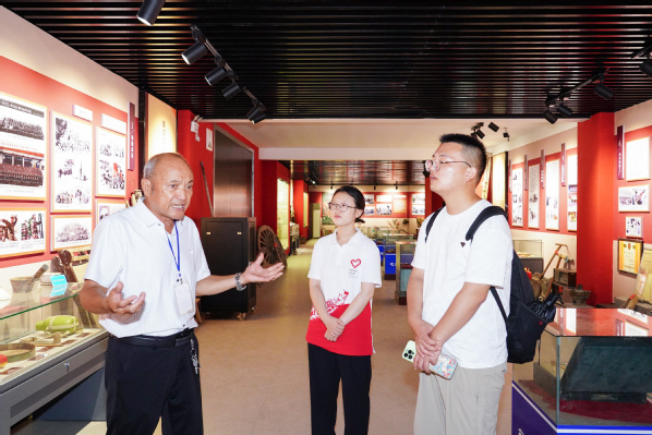 实践队员与沙山军垦博物馆馆长李祥交流